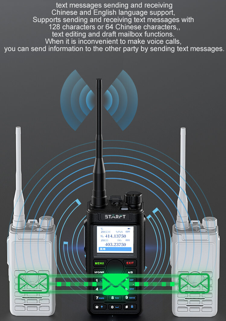 UV58D radio supports sending and receiving text messages within 128 English characters or 64 Chinese characters. When you are not available to send a voice message, such as in between a high-end meeting, you can send a text message instead.